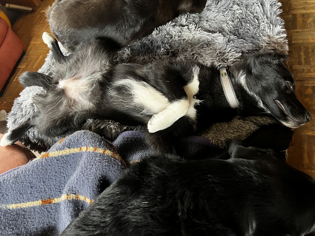 Mit dem Rudel kann Sneki mittlerweile gut allein bleiben – sie macht nichts kaputt und verhält sich ruhig