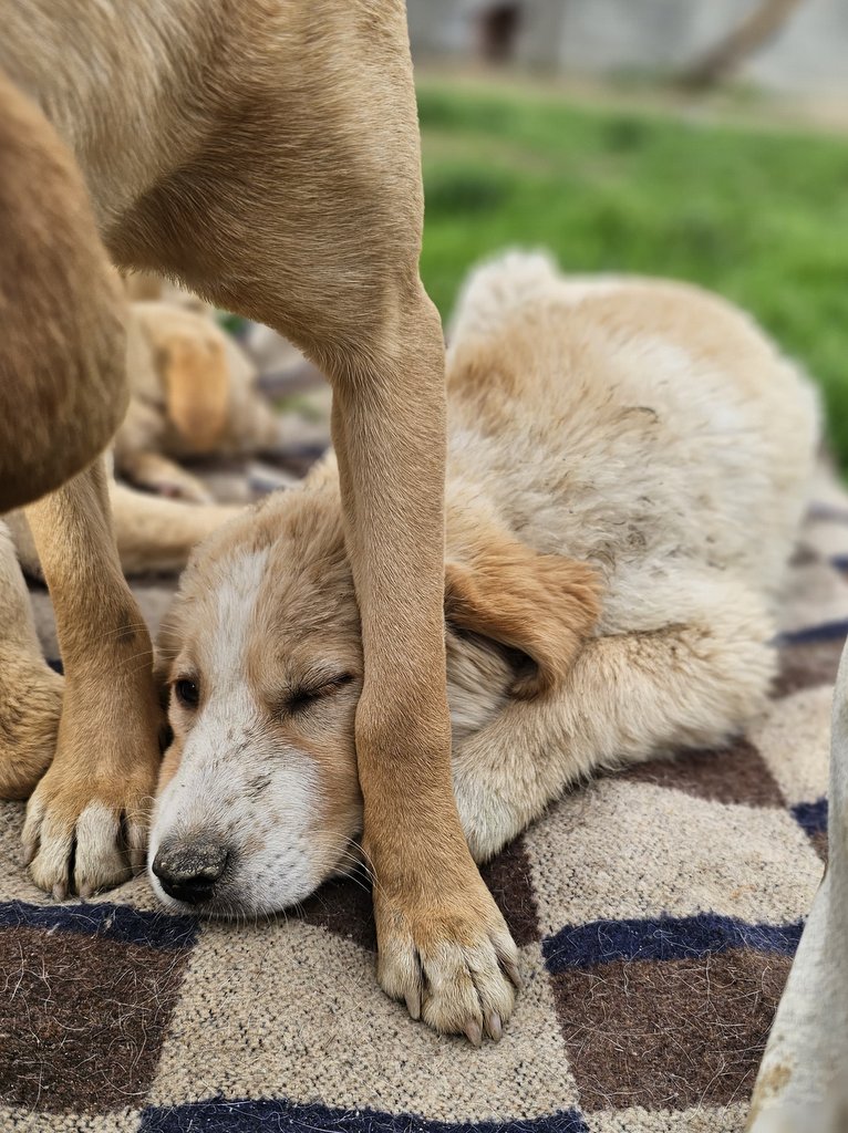 Sarina brachte ihre Welpen unter freiem Himmel zur Welt. Viele Menschen beobachteten die kleine Familie und baten einen Tierarzt um Hilfe. Dieser wandte sich daraufhin an unsere Tierschützerin Viki, die Sarina und ihre Jungen sofort bei sich aufnahm.
