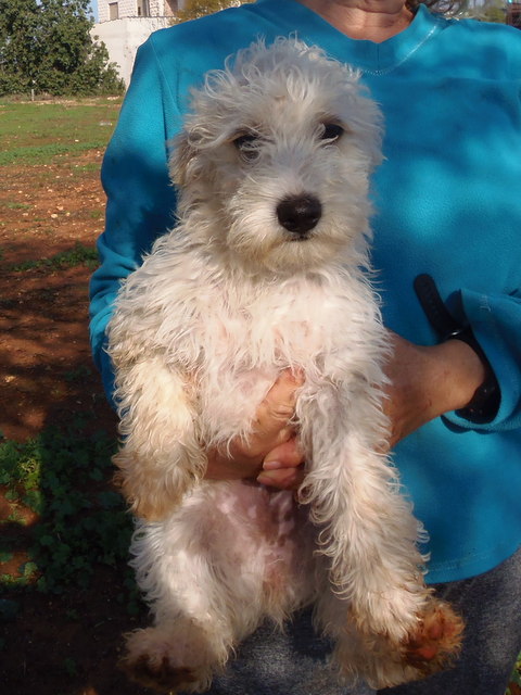 Zina, eine kleine weiße Pudelmixhündin wurde von ihren Besitzern auf Zypern nicht mehr gewollt, als sie sahen, dass sie trächtig war.