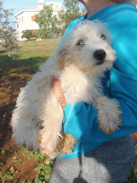 Tamara hat ein sehr schönes helles Haarkleid, und sie ist eine lustige, verspielte Welpin. Damit das Fellchen immer gut und gepflegt aussieht, sollte es regelmäßig, ggf von einer Hundefriseurin, gepflegt werden.