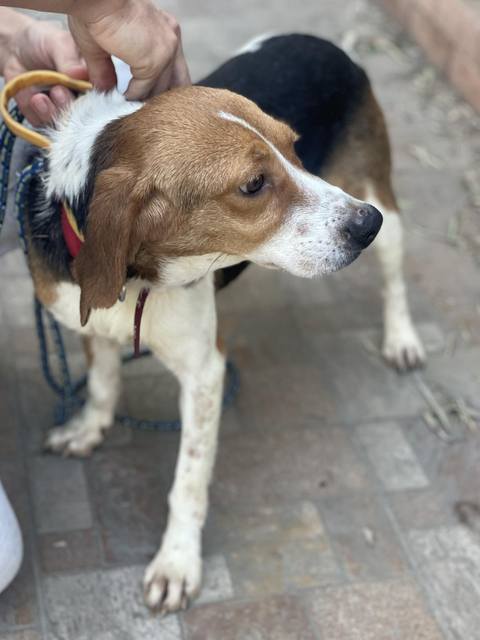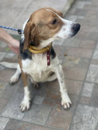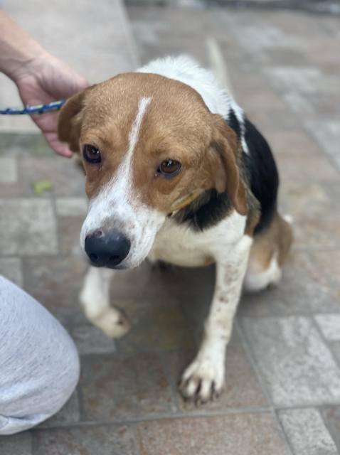 Tammy wurde umherstreunend gefunden und zu jemandem gegeben die sich um Tierschutzhunde kümmert; leider hat sie 50 Hunde und die Lebensbedingungen sind sehr schlecht. Die arme Tammy wird dort rausgeholt, sobald im Roberts-Shelter Platz für sie ist. Tammy wurde Ehrlichiose positiv getestet - ohne Symptome - und auch bereits mit Doxat behandelt, die Therapie ist abgeschlossen. An der Nase hat Tammy eine kleine Narbe.