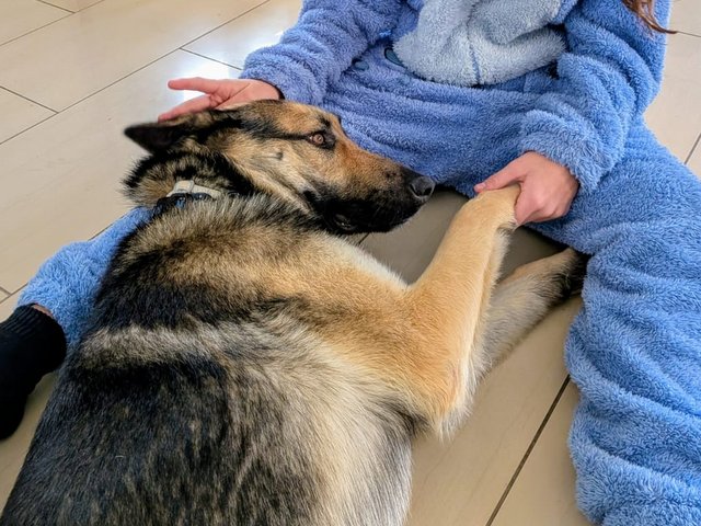 Er ist ein richtiger Familienhund. Wir suchen Menschen, die evtl. Schäfi-Frerunde sind, aber trotzdem soll Teddy nicht als Schutzhund ausgebildet werden. Er ist ein sensibler lieber Kerl, der gerne in eine Hundeschule gehen möchte mit sanfter Erziehung, wo er das Hunde 1x1 lernen darf.