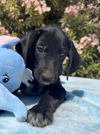 Trust ist einer von 9 Welpen, die unter einem verlassenen Container gefunden wurden. Die Mutter musste mit einer Falle gefangen werden, um sie mit zu bekommen. Sie war offenbar seit längerem ein Streuner, aber niemand konnte sie einfangen, weil sie den Menschen nicht mehr vertraute. Sie ist ein Deutsch Kurzhaar und hat ein wunderschönes Wesen. Sie hat es geschafft, 9 Welpen allein zu bekommen und zu ernähren und am Leben zu erhalten.
