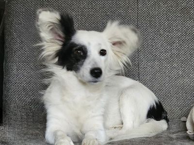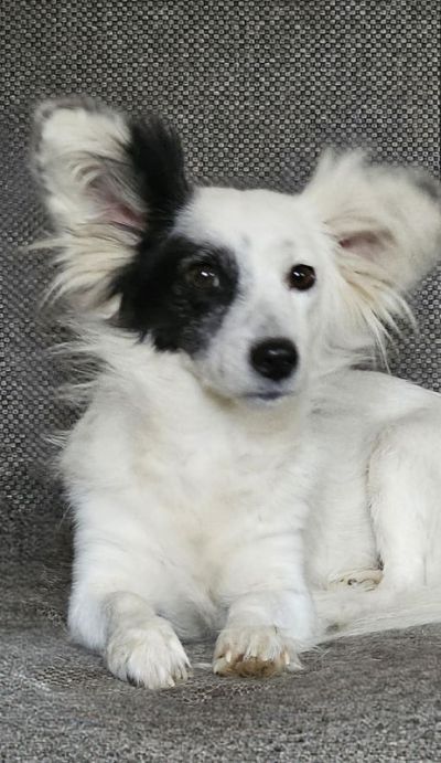 Ushi mit den sensationellen Fliegerohren gehörte eigentlich einer tierlieben Familie, die 6 Hunde hatte. Es kam das erste Kind und sie konnten sich nicht mehr so um die Hunde kümmern, wie angedacht und es wurden viele ihrer Hunde auf der Straße überfahren. Um diesem Schicksal aus dem Weg zu gehen, gaben sie Ushi in Vikis Obhut.