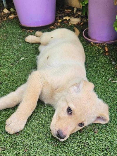 Vanilla ist ein sehr glücklicher, freundlicher und verspielter Welpe, aber eigentlich gibt es keinen großen Unterschied zwischen diesen Geschwistern. Vanilla und Kalina spielen sehr gerne zusammen. Insgesamt sind die 4 Hunde immer bemüht um Aufmerksamkeit zu buhlen und das ist ein wenig überbordend, deshalb wäre es gut, sie zwei / zwei trennen zu können, aber leider gibt es keinen Platz im Pound, alle Zwinger sind voll. Demnächst wird mit der Leinenführigkeit begonnen, um sie mal auf etwas andere Gedanken zu bringen und ein wenig zu beschäftigen. Von allen 4 Welpen ist Vanilla die dominanteste und ihr Fell ist im Vergleich zu den anderen auch ziemlich flauschig.