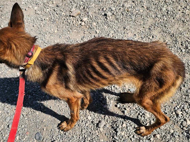 Zara wurde Ende Oktober vollkommen abgemagert mit 9kg in einem örtlich ansässigen Geschäft gefunden. Sie kam im Paralimni Pound in einem sehr schlechten Zustand an, die Knochen schauten überall heraus, sie war wohl lange Zeit ausgehungert worden. Im Pound begannen sie mit 4 kleinen Mahlzeiten pro Tag Zara aufzufüttern; das Futter bestand aus sehr gutem Welpenfutter und Hühnchen. Es dauerte eine Weile, bis sie die Leckereien aufnahm. Wie man aber sehen kann, wurde sie damit von 9kg auf 15kg aufgefüttert, so kann Zara bleiben. Zara ist kleiner als sie zunächst aussieht und trotz ihres schlechten Starts ist sie ein freundlicher Hund.
